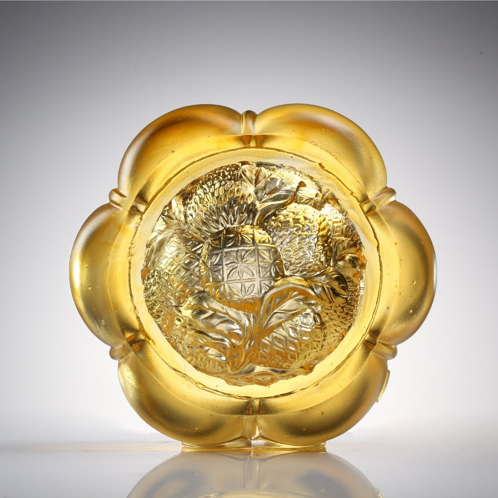 LIULI Crystal, Pumpkin and Lychee Sculpture, Auspiciousness in Gold